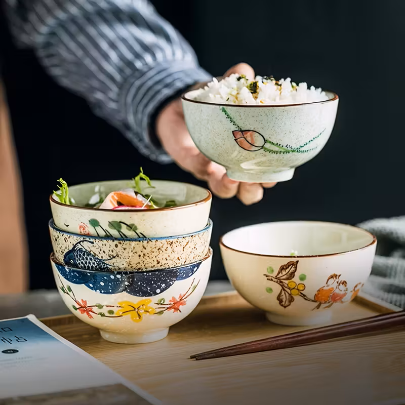 Tato keramická miska je zdobena jemnou ruční malbou inspirovanou přírodou a japonskou estetikou. Každý kus je originál s unikátním motivem, který dodá vašemu stolování osobitý charakter. Ideální pro podávání rýže, polévek nebo salátů. Vyrobena z kvalitní glazované keramiky, která je vhodná do myčky i mikrovlnné trouby. Vyniká kombinací tradičního řemesla a moderní elegance.
